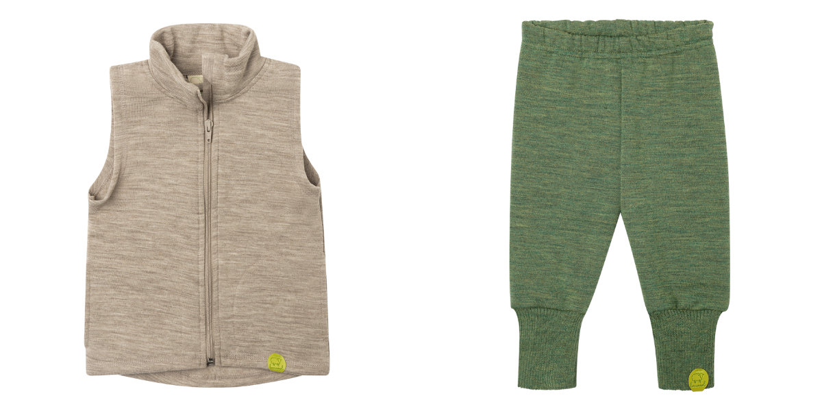 Die Wollhose (ab Gr. 62/68) bietet mit ihren umschlagbaren Beinbündchen größtmögliche Flexibilität und Bewegungsfreiheit. Die leichte, wärmende und vielseitige Weste für Kinder (Gr.104-140) mit verlängertem Rückenteil, schützendem Stehkragen und zwei Taschen eignet sich perfekt für die Übergangszeit oder als Midlayer.