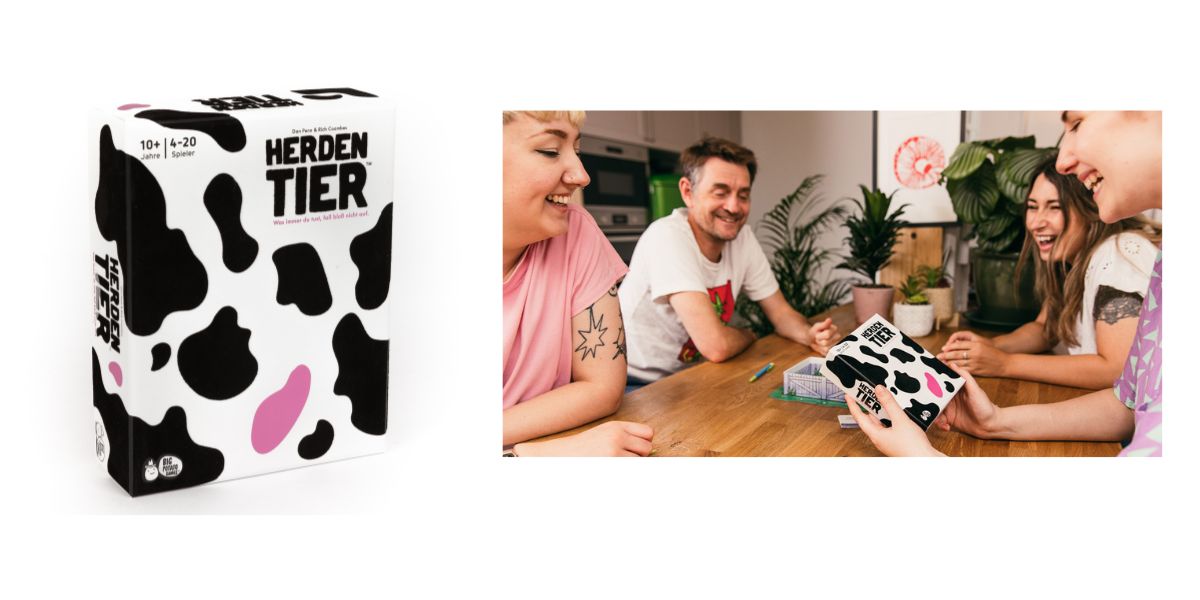 Herdentier ist ein kommunikatives Partyspiel, bei dem Gruppendynamik zählt: In jeder Runde heißt es, denken wie die Herde! Wer auf die Fragenkarten dieselbe Antwort wie die Mehrheit gibt, sammelt Kuh‑Spielmarken. Außenseiter, hingegen bekommen die rosa Kuh bekommt und verliert vorerst wertvolle Punkte. Diese gilt es, in den nächsten Runden wieder los zu werden. Mit über 200 Fragen, liebevoll gestaltetem Zubehör und hohem Wiederspielwert ist Herdentier ein ideales Familienspiel.