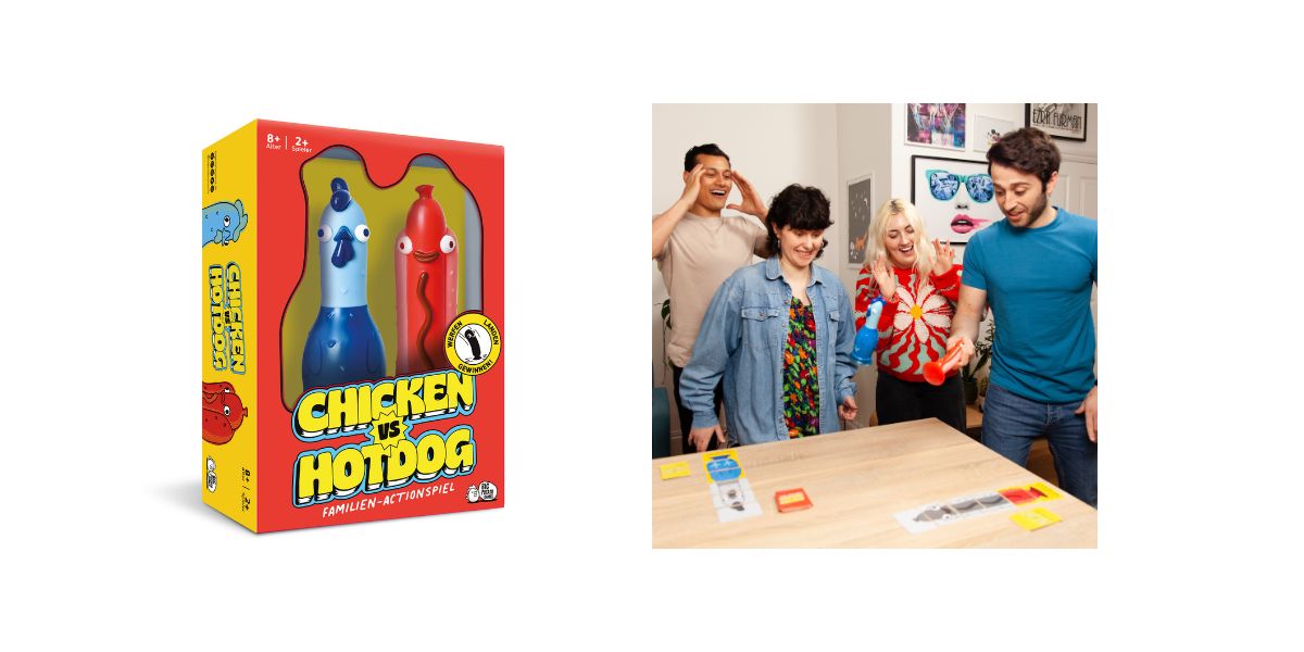 Mit Chicken vs. Hotdog bringt Big Potato Games ein besonders energiegeladenes Wurfspielerlebnis: Die Spieler wählen Herausforderungskarten, bieten gegeneinander und versuchen, ihre Figuren– Hühnchen oder Hotdog – geschickt zu schleudern, um die gestellten Aufgaben gekonnt zu meistern. Unkomplizierte Regeln sorgen für chaotisch‑lustige Aktionen und Lacher bei jedem Spieleabend.